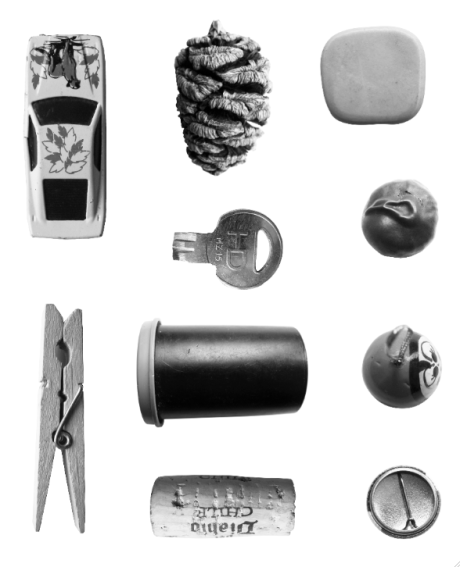 Below: image of all ten objects sent away for plates with a halftone pattern.