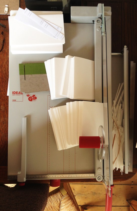 I woke up last Friday, full of joy and industry, ready to rush out to pick up my 250 sheets of paper. Cut paper on Friday, start printing Saturday, eat food on Sunday, print some more on Monday. That was my plan, my glorious plan. But it turned to ash when I realized that everything in the universe was closed for the Easter holiday. So began four grumpy days of thumb twiddling. With everything ready to go but no paper to cut down, I could do nothing but wait for the warehouse to open up again. So I settled into a lazy weekend, ate a roast, and played a morally questionable board game with some friends. By Monday, a day that any self respecting paper distributor would open back up, I lost my mind and started cutting down some cartridge paper for blank books made from proofs and experiments from my screen printing efforts. Today the world is back to normal. If my next post doesn’t include a picture of a millpack of paper, I will shut this blog down.