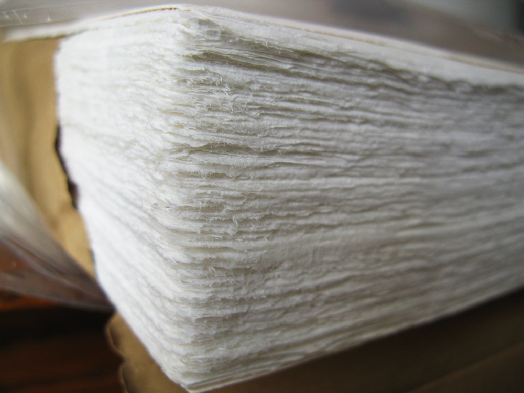 There it is at last. A millpack of Zerkall, just waiting to be cut down and turned into a book. To blog about it is to waste time, and there is no one here to high-five, so I must start cutting. Here is what 250 deckle edges look like, all piled up: