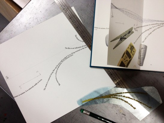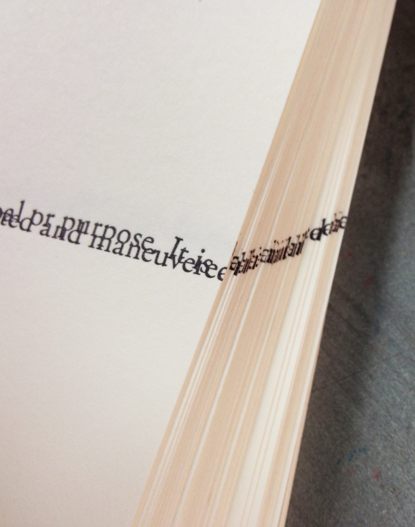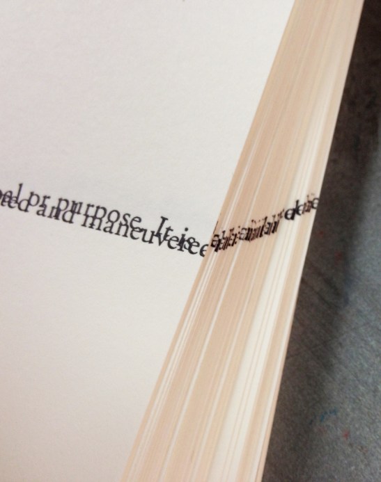 Here I am lining up the text with yesterday’s run to make sure that the text follows along a baseline from one page to another. So far so good. By the way, does anyone else think I should have been a hand model? Look at those fingers. Poise, I say. Elegance and poise.