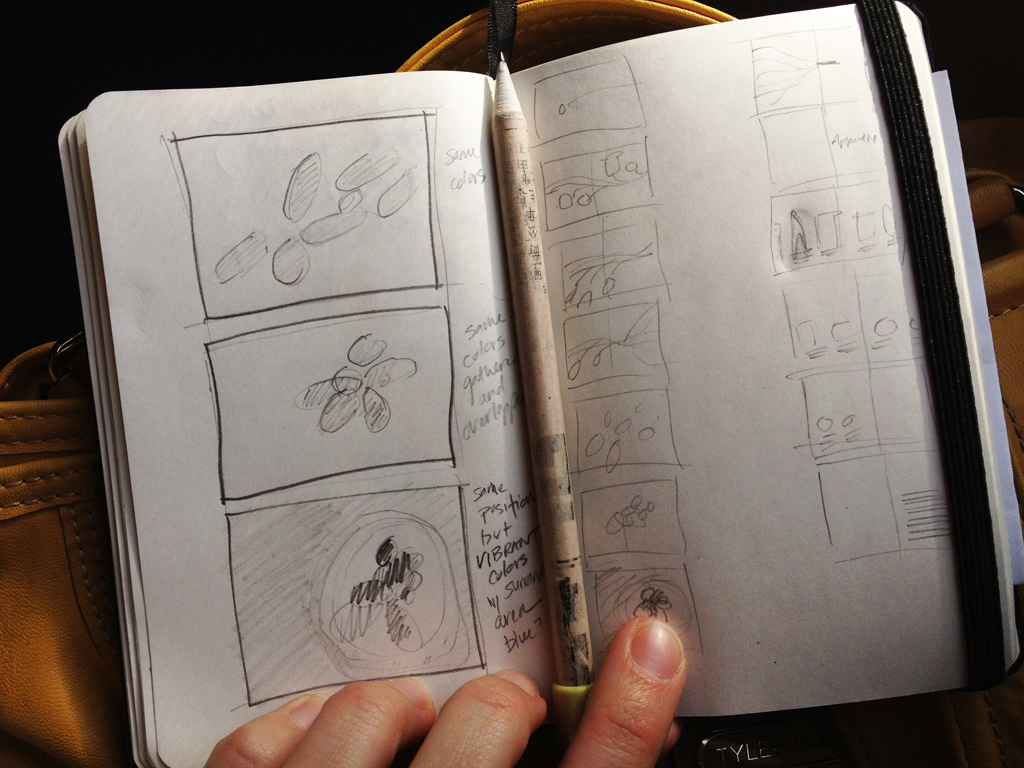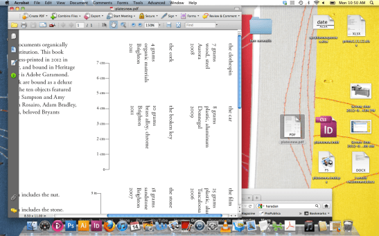 I am still working on the design for three folios in the center of the book, a transition sequence between the text and the appendix. I am close to a solution, and carry my notebook around to scribble possibilities every now and then. I am also resolving the box and the cover in this way. Slipcase or clamshell box? Do I want the title and my press name visible from the spine? There are still many questions about the final state of this book.