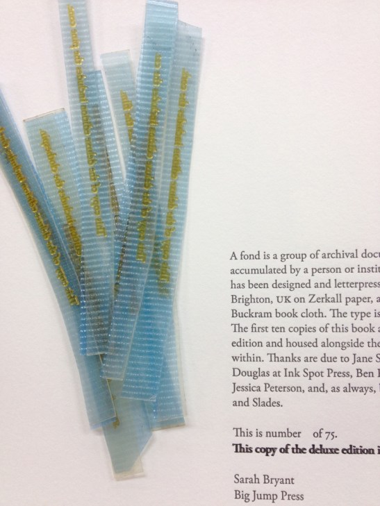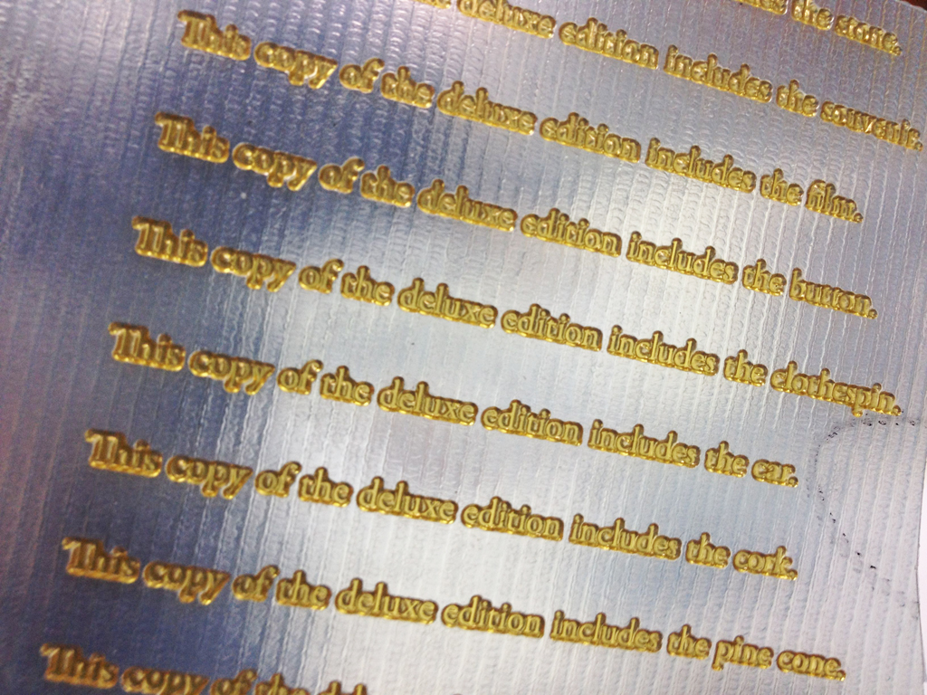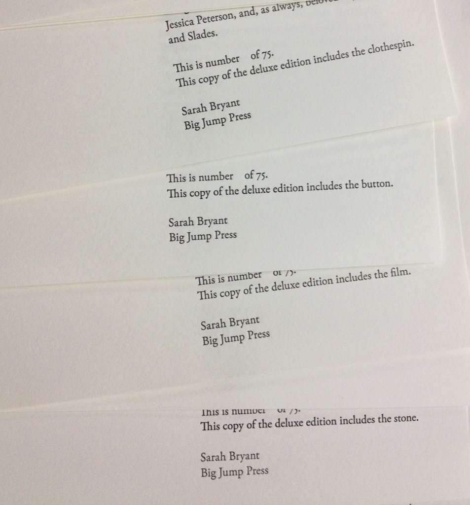 Run #3 technically could be described as Runs #3 through #12. Because this book will include a “deluxe edition” of ten copies within the larger edition of 75, the colophon (the page at the end that gives information about the book) needs to be slightly different for each of these ten copies. I have ordered plates with separate text for each of them.