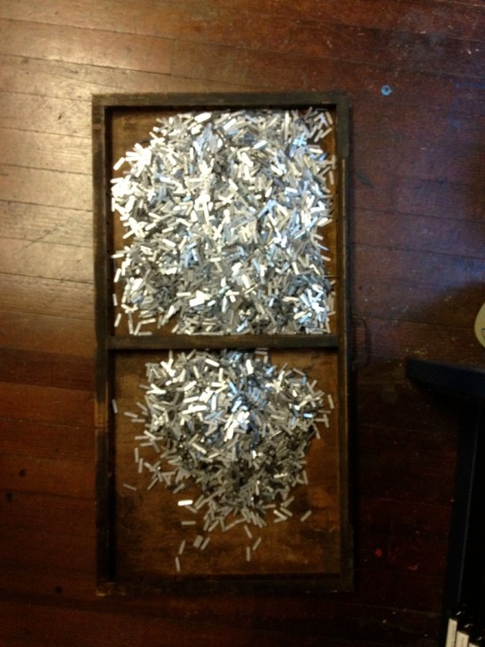 Yes, that was an entire case of 14 point Gill Sans. One brief moment, one bad balancing act, and WHAM. your next few days suddenly look bleak. But we came up with a pretty elegant solution (If I do say so myself.)