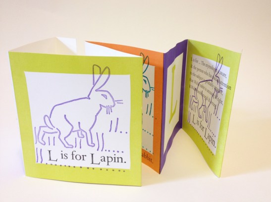 Molly made a book inspired by the cut of a bunny that she found in Paris. It is meant to resemble children’s blocks, and was the most colorful thing in the whole building.