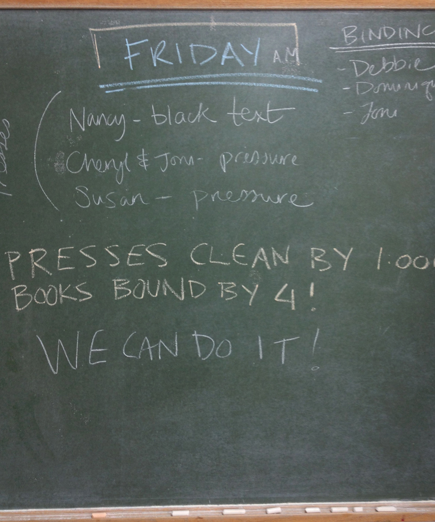On the last day, the binders quietly and intensely assembled and bound their work in the calligraphy studio.