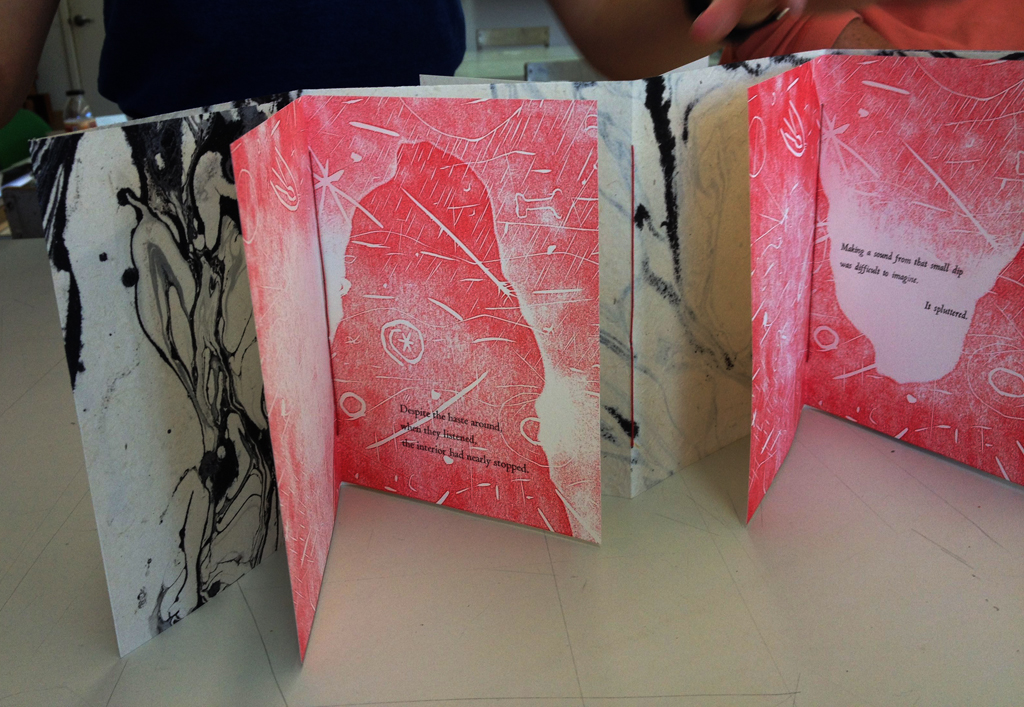 In the end all of the work paid off and everyone produced a small edition of books. Below, Cheryl broke all the rules by printing the covers after binding (do not try this at home.)