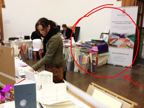 Charlotte and I were positioned directly in front of the entrance to the fair. Immediately to our left? Ratchford Limited Bookbinding Supplies.