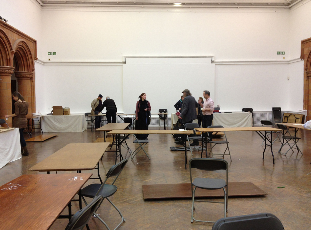 One of the hardest things about moving to the UK has been separating myself from all of my geeky book buddies in the States. Producers of letterpress printed artist’s books are relatively thin on the ground, so having a few friends you can count on is important. Who do you call when your press starts making a weird noise? Who can you whine to about matching colors? Who can you talk to about the pros and cons of the automatic washup feature on your Vandercook press? Most of my letterpress buddies are 3,500 miles away. (that’s you, Southern Letterpress, Queen Anne’s Revenge, and oh so many others!) So while I was hoping to sell some work, I was also looking to find some people. So I packed up all of my stuff and Ben and I drove it all to Manchester, about five hours away.
