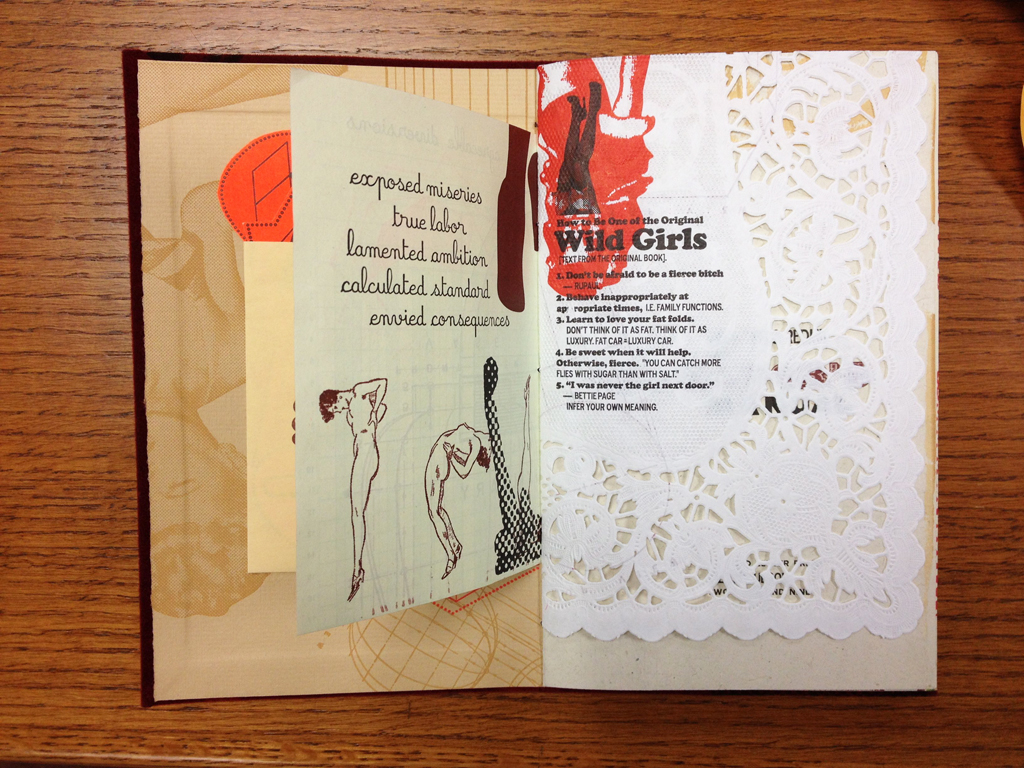 Last Tuesday I voted, got on a plane, and immediately found myself in a room full of artists’ books. Max Yela, my gracious host at University of Wisconsin-Milwaukee, brought me straight to the library from the airport and invited me to be a fly on the wall as he talked to a group of graduate writing students. The tables were heavy with books, and we wandered through, paging through spectacular work and taking photos to show our friends and family. Do you want to see some books? I hope so because that is pretty much what this post is all about. Above: Wild Girls Redux from Ellen Knudson at Crooked Letter Press.