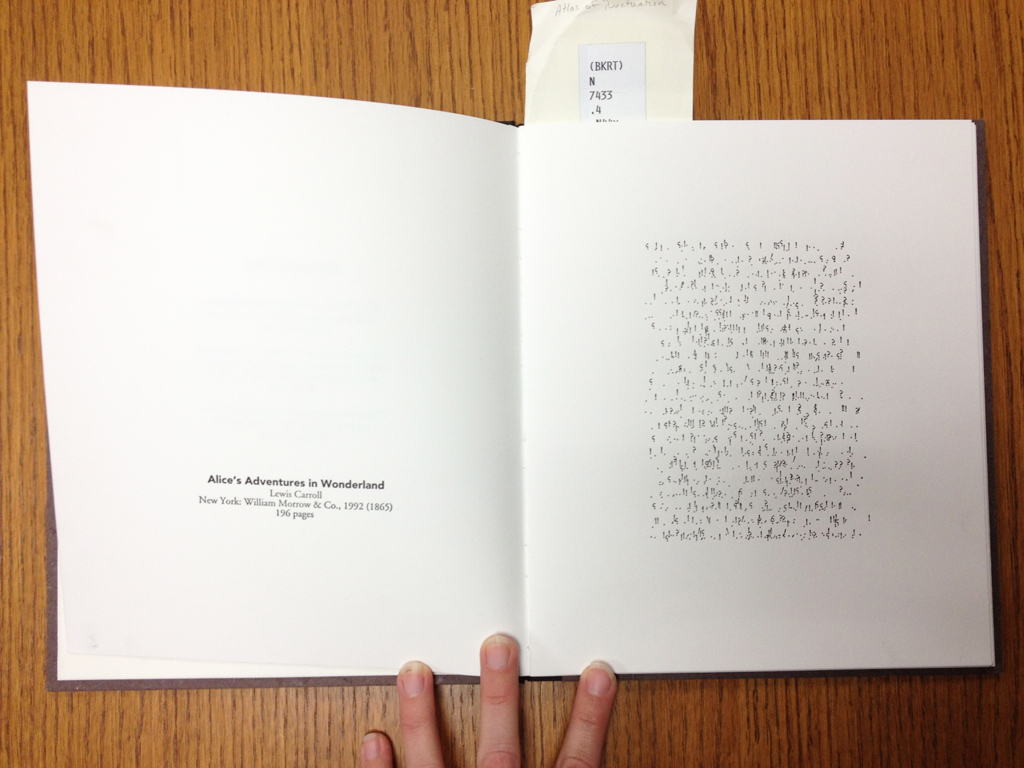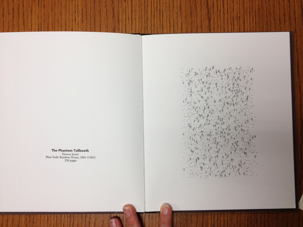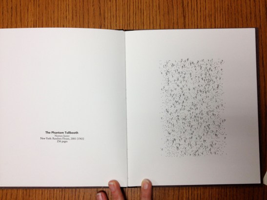 Atlas of Punctuation from Heidi Neilson. This book condenses all of the end punctuation in familiar books and presents it on the page as if you are looking through the book.