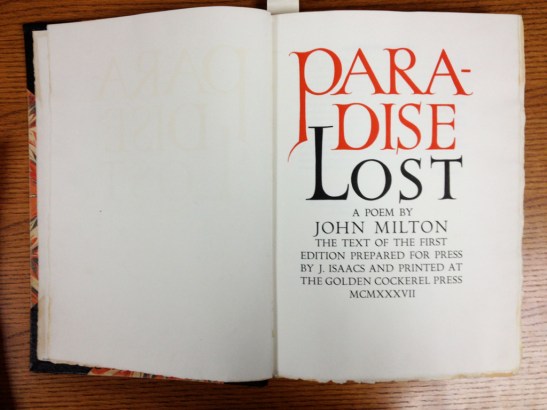John Milton’s Paradise Lost from Golden Cockerel Press (Lettering and typography from Eric Gill)
