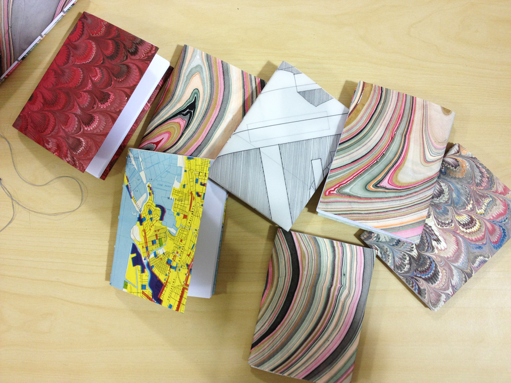 IMG_6177Friday Part II: Yet another bookmaking workshop back at the Cracker Factory. This time it’s a letterpress-bookbinding one-two punch as we set type and print covers for pamphlets that we sew in class.