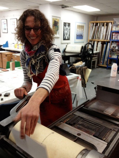 Below, I’ve listed five Letterpress-printing and Bookbinding courses I’ll be teaching  in January and February in Brighton and in London. For god’s sake, look how happy this woman is. This could be you!