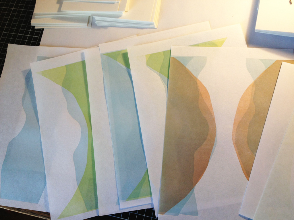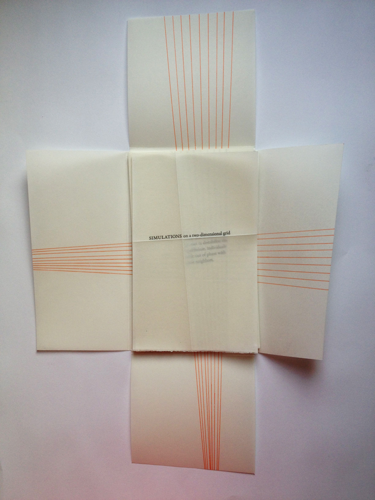 SimulationsThis book is letterpress printed, hand drawn, folded and waxed. Every step must be repeated carefully and identically. I VICTORIOUSLY made a series of templates to help me accomplish this.