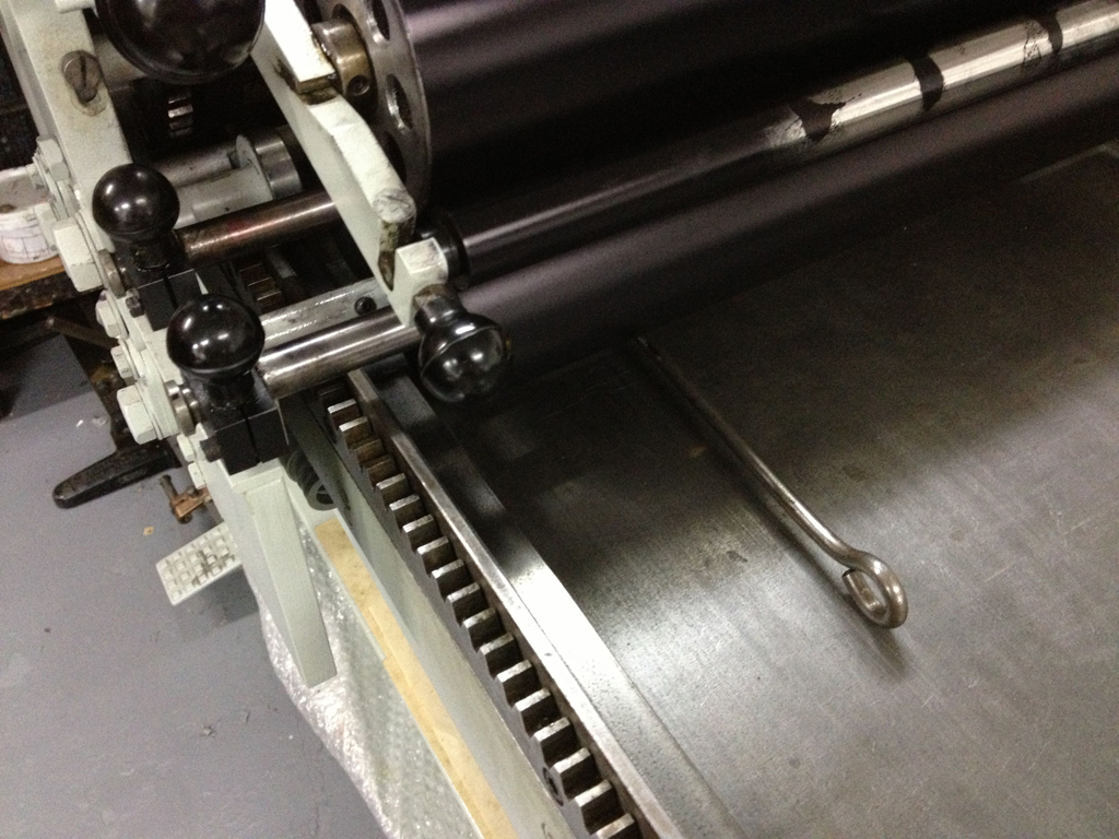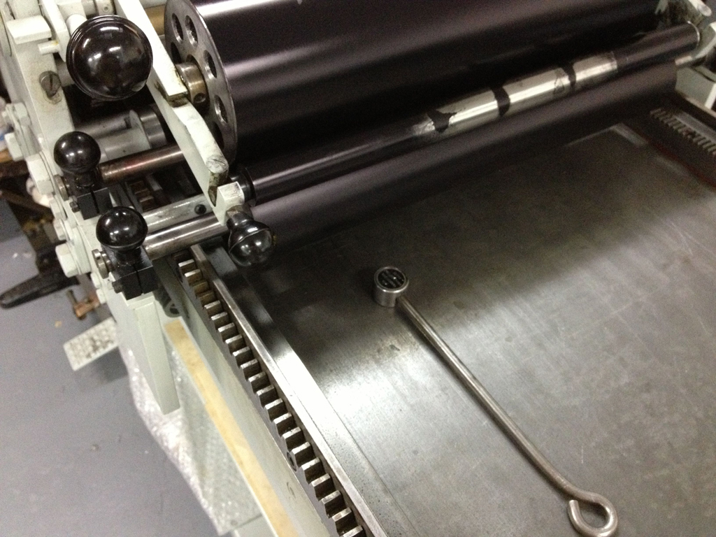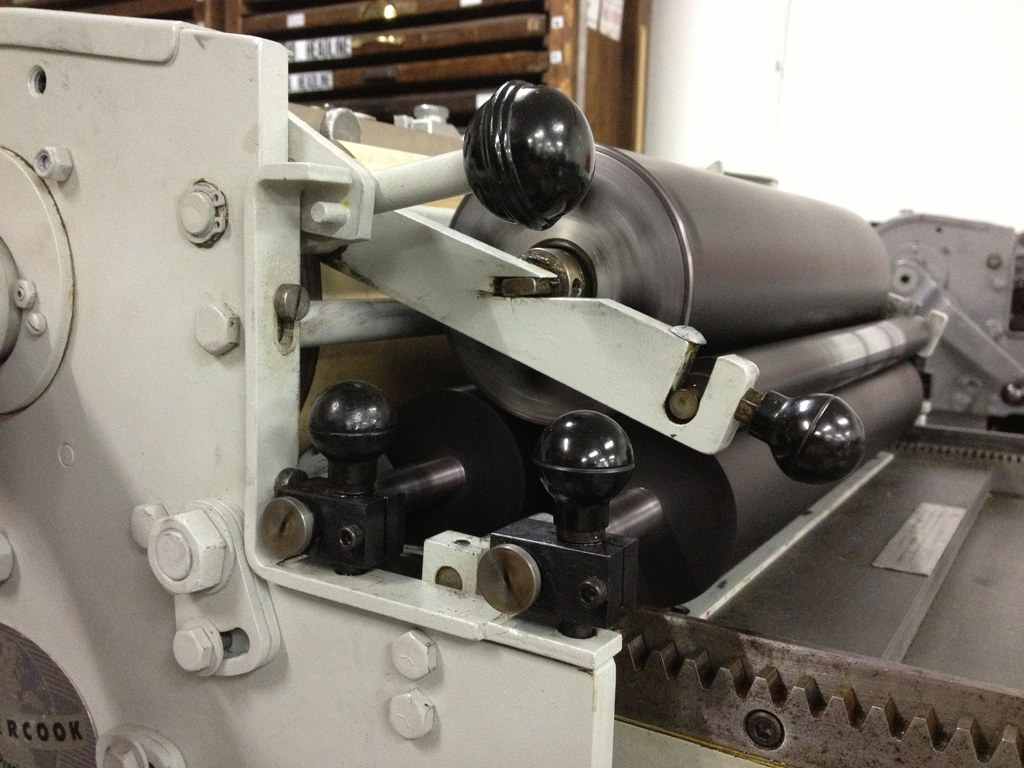 Oh, hello again! Don’t mind me, I was just checking the roller height on this Vandercook SP-15. What’s that? You. . . you don’t know how to check the roller height? You’ve never adjusted the rollers? Holy Christ, you’d better sit down.