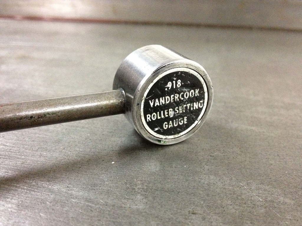 Some people like to crank the cylinder over the gauge rather than push the gauge under the roller, but I prefer pushing the gauge. This way I can actually feel the resistance as the gauge passes under the rubber. As you check the rollers more and more frequently, you will get a sense for how the rollers should feel against the gauge. But we’re not there yet, so let’s have a look.