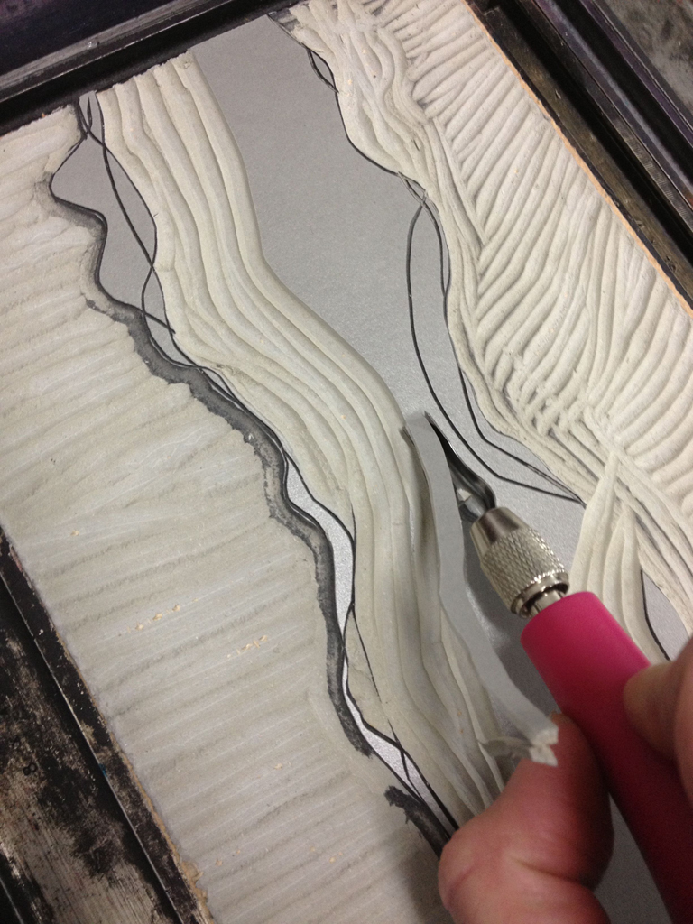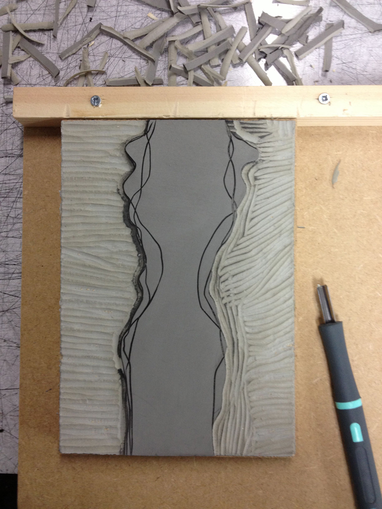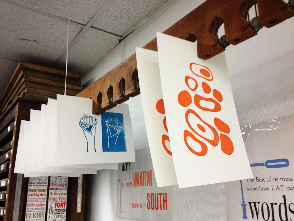 Back in Brighton at Ink Spot Press, the Art on the Press course is yielding some fun linoleum carvings. Below, Nic agonized over getting rid of the rogue marks on her block.