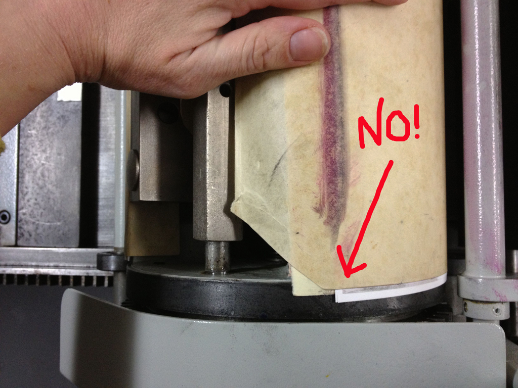 Tighten that bad boy back up again. If you tighten it too much, you might rip the drawsheet, so take care. You want the drawsheet to be tight as a drum where it is suspended between the end of the cylinder and where it starts to wrap around the bar, but, as you might imagine, you don’t want it to be ripped in half.