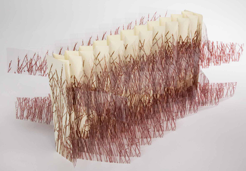Bluestem is an adaptation of the flag book; in the photo below you can see that Karen has tipped flags onto two parallel concertinas.