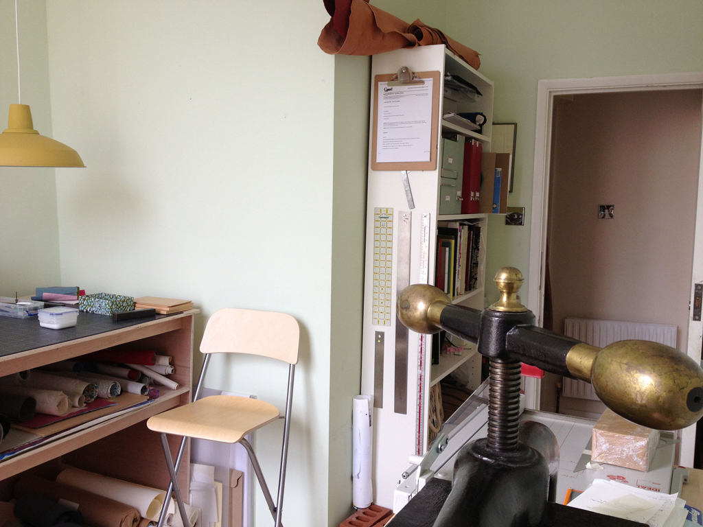 Two bookshelves mean that all of my books on books and my binding models and my books for sale and my work in progress can inhabit logical places. Here is one:
