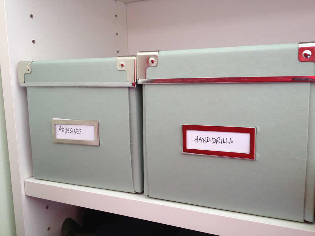 AFTER: Everything (EXCEPT LAUNDRY) has a place in the new bindery, even hand drills and powdered adhesives: