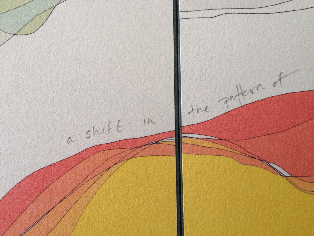 Whoa, what’s this? This doesn’t look like a bookbinding handout? What’s it doing in my studio? Wait a minute, is this. . . artwork? Yes, that’s right ladies and gentlemen, in a shocking turn of events I have managed to find a few hours to string together to do my own work. What you see above is the very beginning of a book project called Shift, part of a collaborative effort with Katie Baldwin, Denise Bookwalter, Macy Chadwick and Tricia Treacy. The five of us are coming together as Shift lab. Here is some writing I did a few weeks ago for our new blog (where you can currently find a post from Katie Baldwin.)