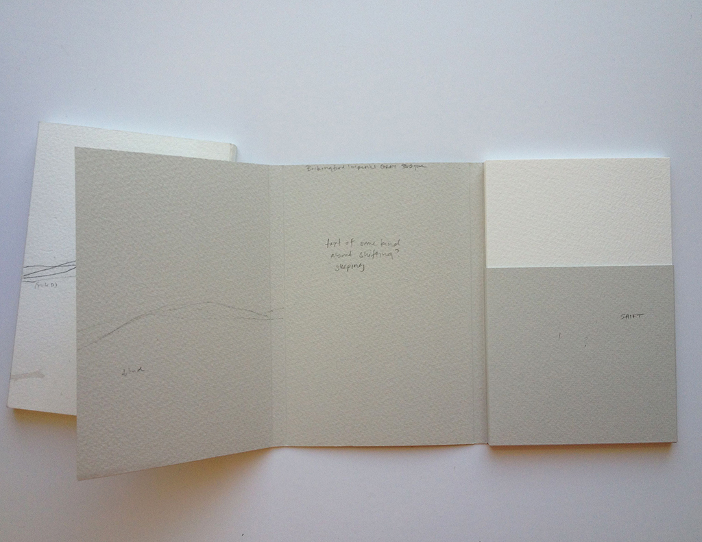A long break in teaching since the holidays has given me the breathing room to think and design. The book I am producing with Shift-lab is really moving forward now. I’ve got to ship it to San Francisco before Valentine’s Day so it’s time to get serious. Shift-lab is a collaboration between myself, Katie Baldwin, Denise Bookwalter, Macy Chadwick, and Tricia Treacy. We are each making a book of identical dimensions and a partner print with the theme or title of Shift. Since my last post about mockups and design I’ve simplified this project. Instead of thick panels made of board covered with paper, I’ve moved to cards printed on two sides contained in a wrapper double wrapper. See below: