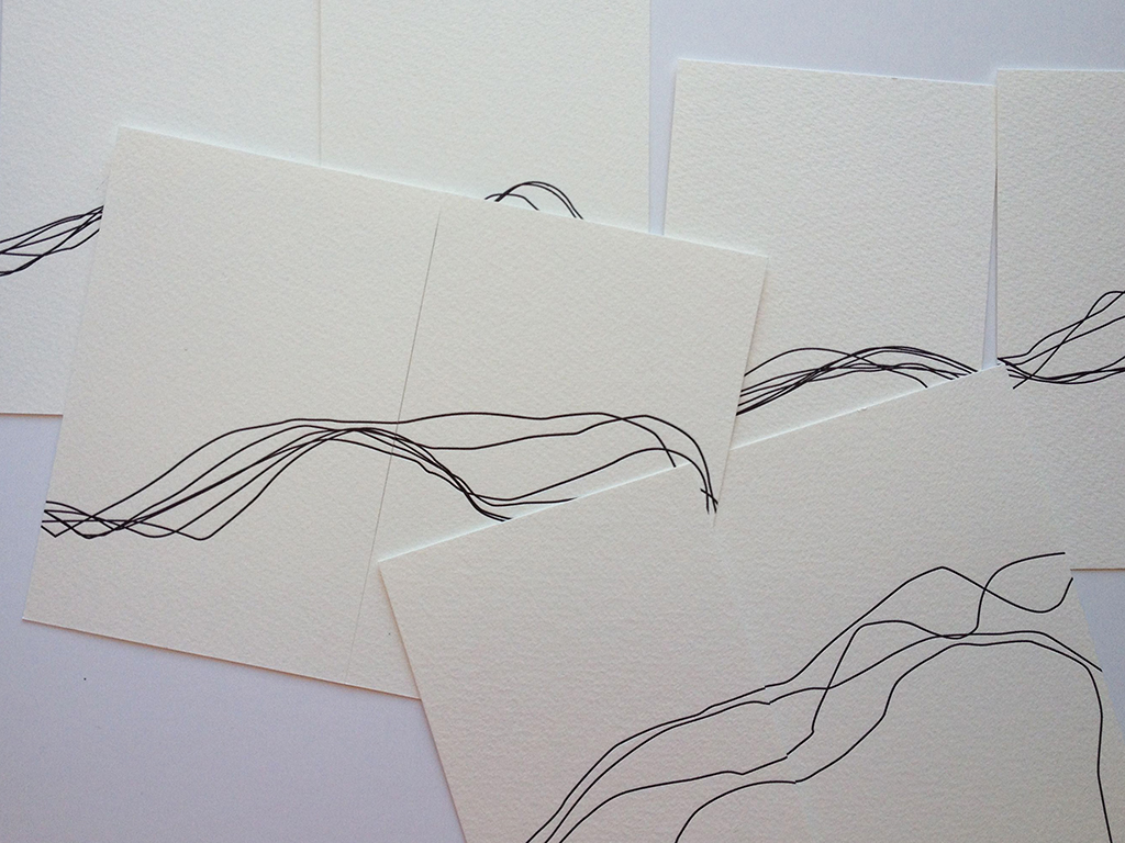 The black lines on these cards have already been letterpress printed from polymer plates. Yesterday I ordered plates for color areas inside the lines. The imagery comes directly from dozens of photos of my body moving as if in sleep.