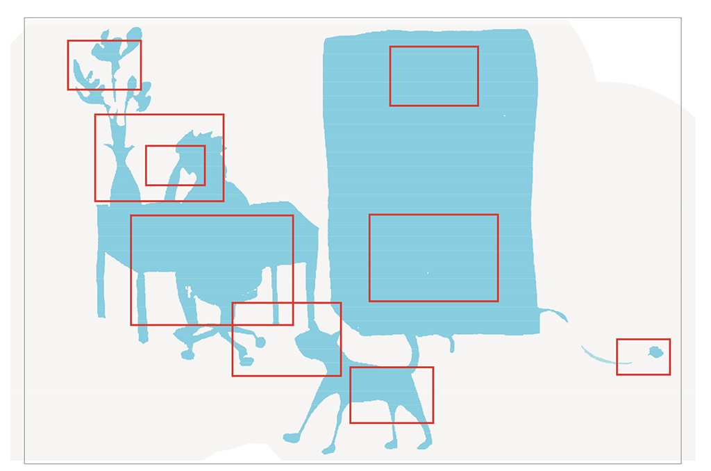I initially envisioned the book simply as a dissection of a room. Red rectangles indicated areas that might be dissected in subsequent pages. There was much work to be done.