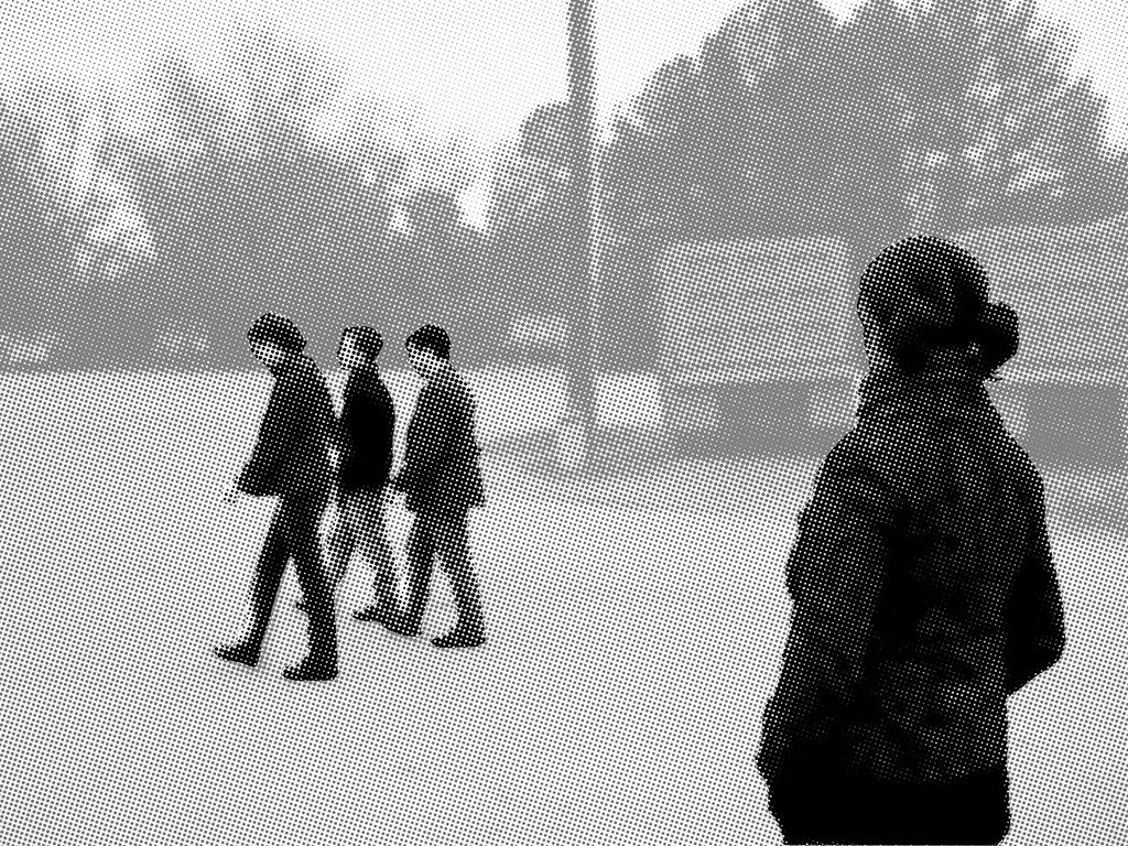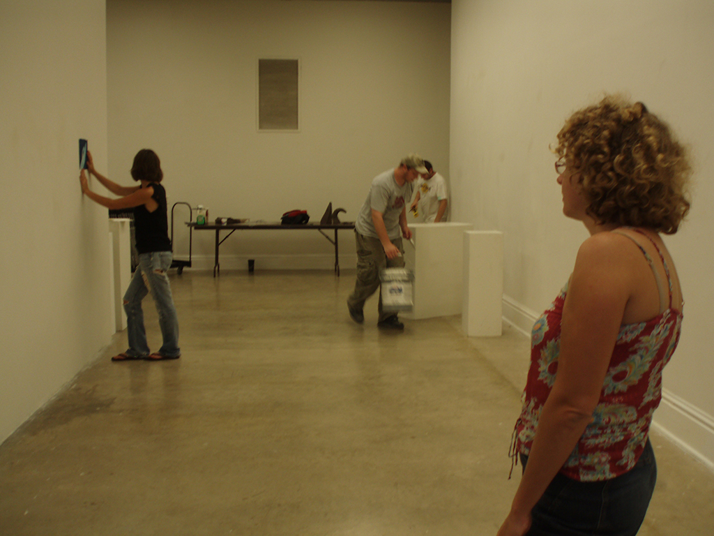 I needed imagery to work with before I could move forward. I had been using an assortment of old photographs as source material for early tests, but I needed to be more deliberate if I were to make a mockup in earnest. Friends of mine were hanging a show in a gallery nearby, and I used that opportunity to take some photos of figures in a relatively empty environment, thinking that I wanted to focus entirely on figures in a featureless space.