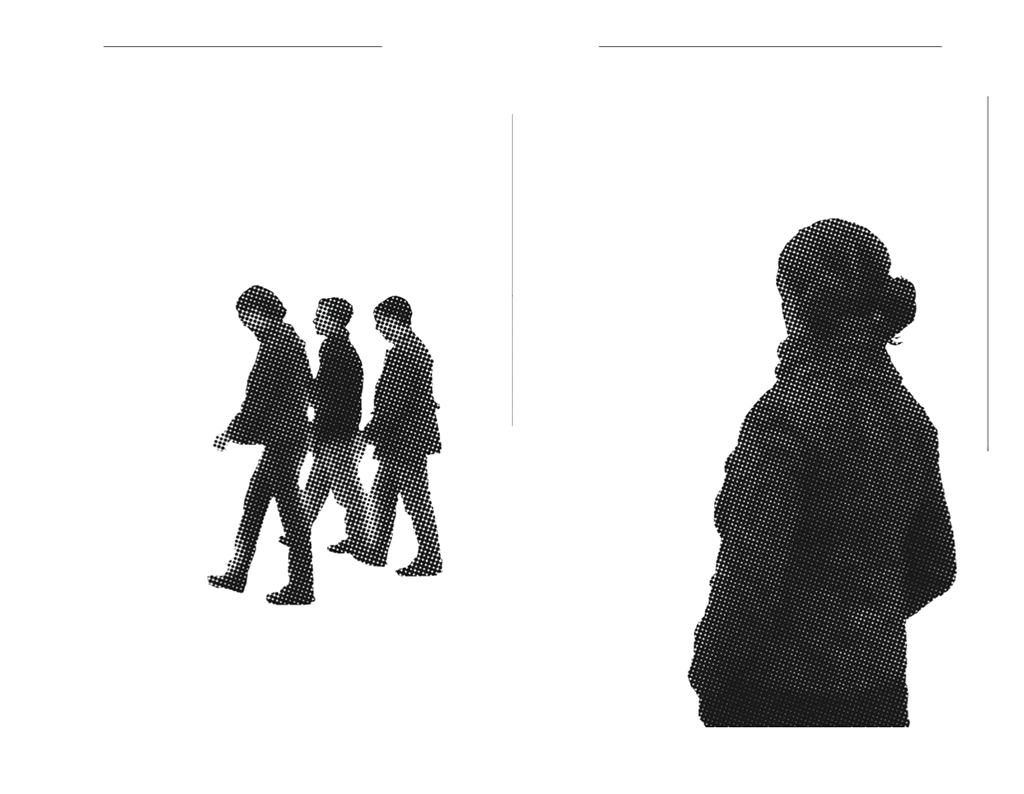 Over the course of its design, this book evolved from a rough and unfocused concept into an investigation of our compulsion to imagine the basic relationships of the strangers in our immediate surroundings. The couple (?) in the supermarket, the mother and daughter (?) on the street. Our perception of those connections at any given time can also be a snapshot of our anxieties. I finished the book in the fall of 2008 just after moving to New York State. Two years earlier, the project began with this quick digital sketch: