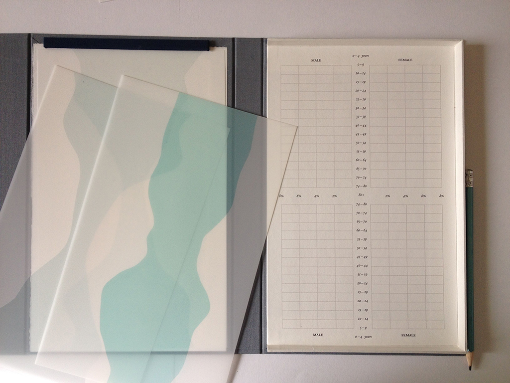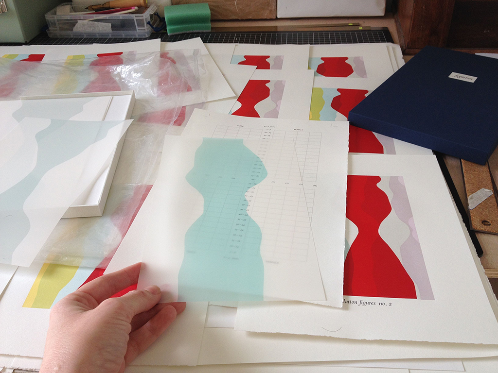 Science Correspondent/Collaborator David Allen was back in UK last week to continue our work on what we have come to refer to as “Dave and Sarah’s Amazing Project.” Dave is a visiting Biology professor at Middlebury College and, coincidentally enough, my cousin. We went to college together, we go to family reunions together, and now, as you do, we are embarking on a book about population data, creating vaguely human-shaped figures out of paired population pyramids. Look how excited Dave is above! And that print wasn’t even finished yet.