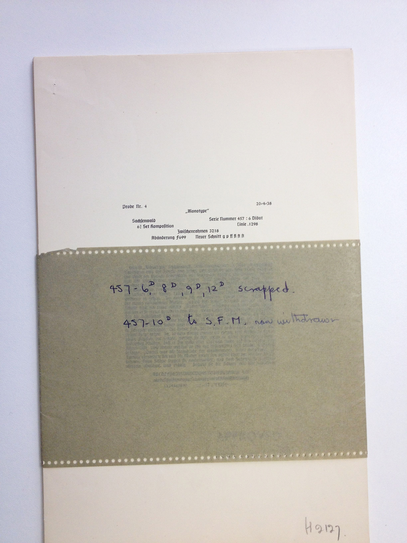 Thank you so much for this additional information, Florian! I do not recall anything about additional weights, but I’ve sent you an email with some additional photos that I took while I was at the archive, I hope there is something included that can help you! If you don’t receive anything from me, let me know a better email address to use. I know that Toshi Omagari at Monotype was also very interested in the story of this typeface, perhaps he has more information.