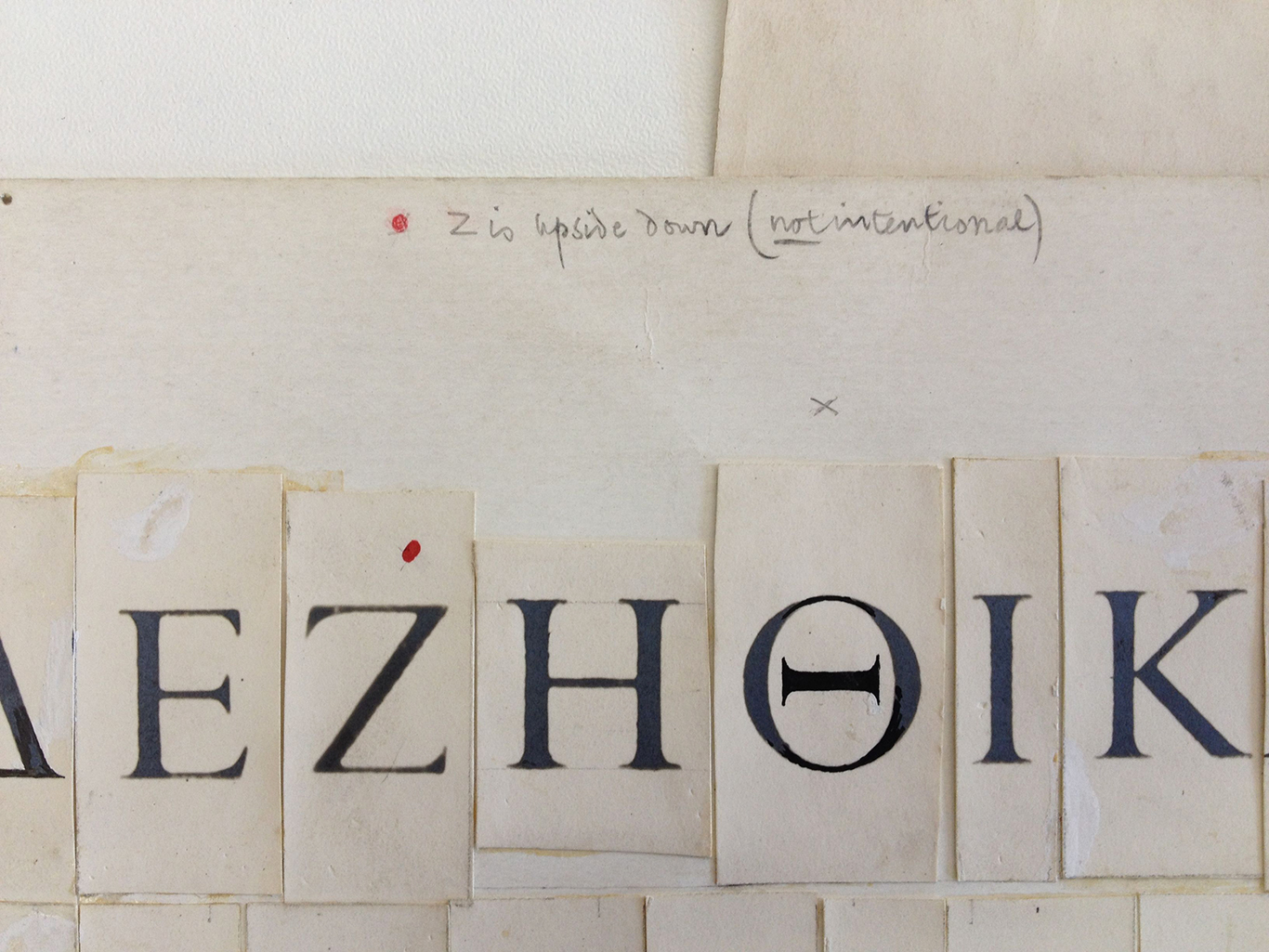 What better way to celebrate being back in the UK than another post about the Monotype archive in Salfords? A few months ago, Monotype designer Toshi Omagari was kind enough to show me Eric Gill’s original drawings for Perpetua Greek from 1929.