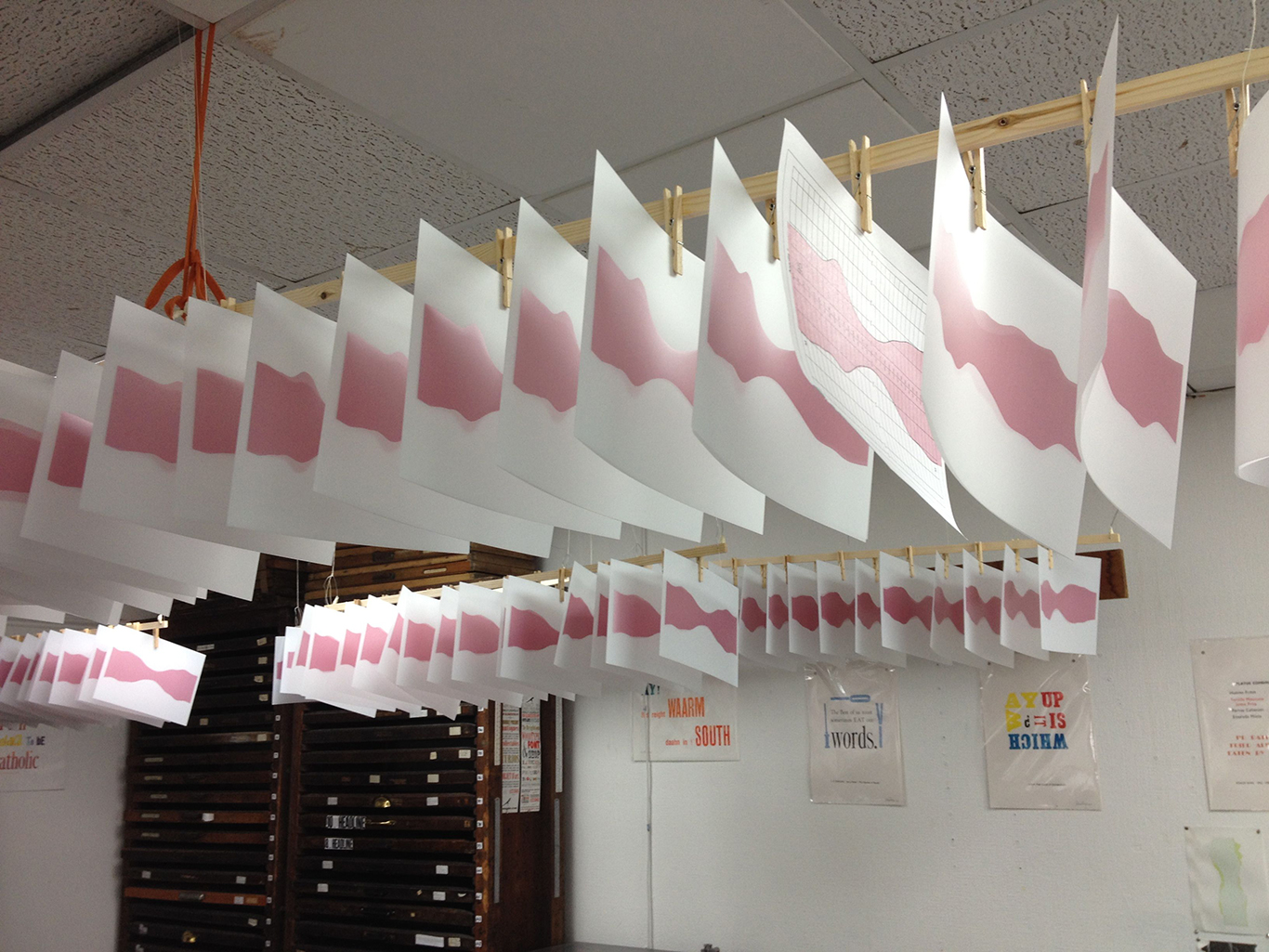 I am, as you can see, working hard to churn out the new book these days. This kind of printing is a slog. Not very difficult, not very interesting, nothing to do but crank them out sheet by sheet until all the drying racks are full. The drying is the only bottleneck, so whenever I feel like the pace is too slow, I build a couple more racks and hang them up. Right now I have enough hanging space for six of these figures (each in an editions ranging from 40-100 copies) per printing day, but that is about to increase by two: