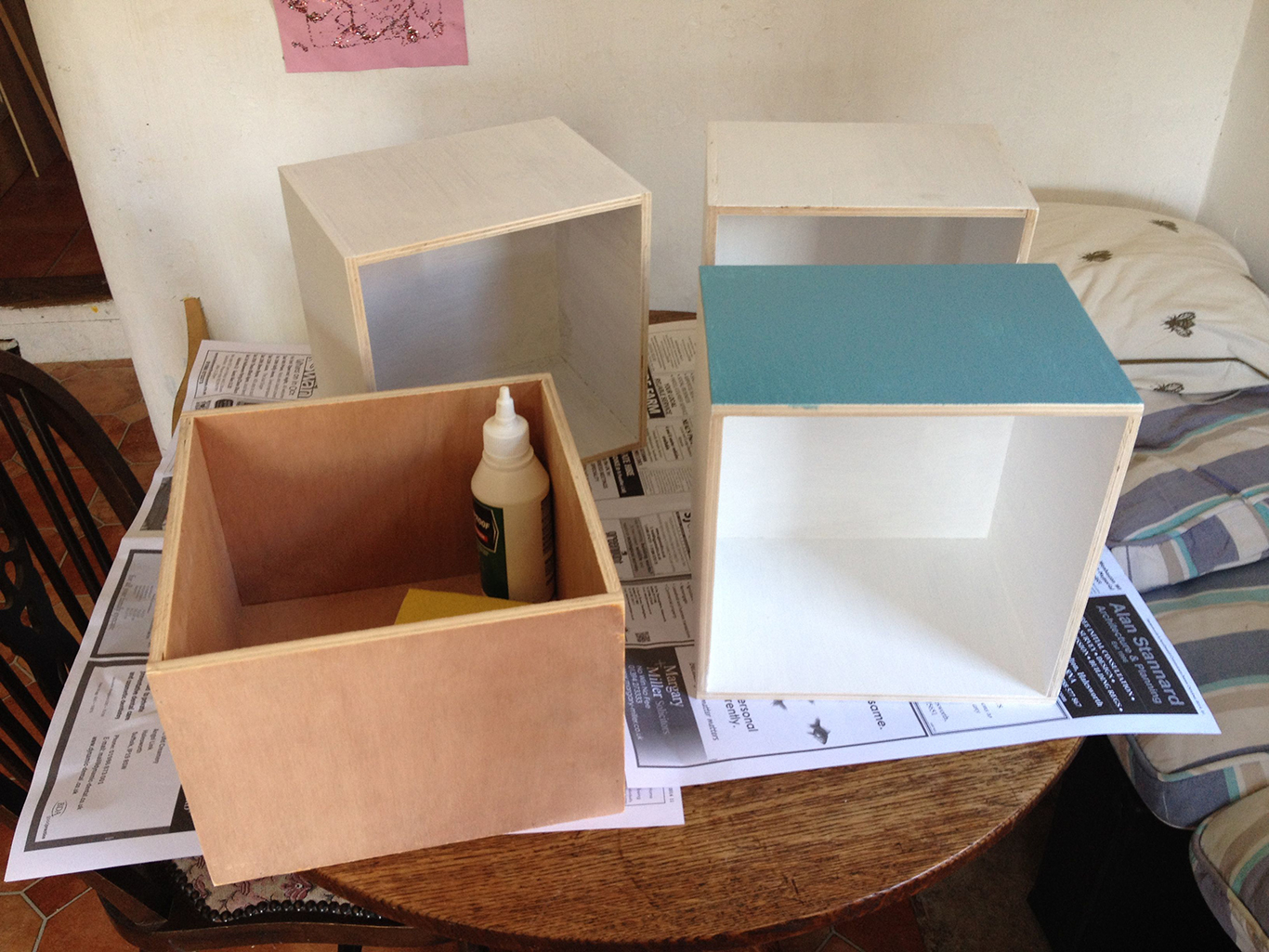 Branching out into making things out of wood has not been as difficult as I expected. Turns out if you can make a box out of binders board and book cloth, it isn’t much of a leap to plywood and primer.