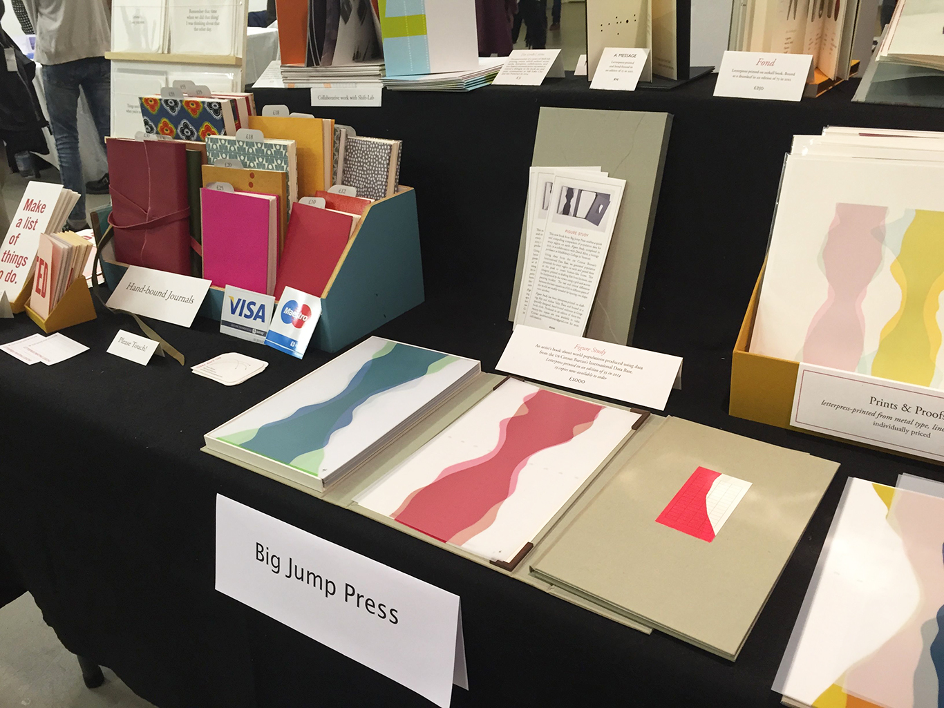 Despite the photo at the top of this post, which suggests that I had company behind the table, I was on my own for most of the weekend and so didn’t get the chance to do very much hunting around. I get away for a few minutes every now and then, and saw an amazing variety of books. Like this hilarious use of œ wood type ligatures from Semple Press: