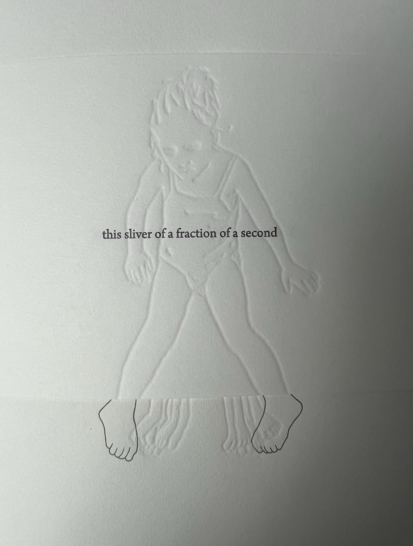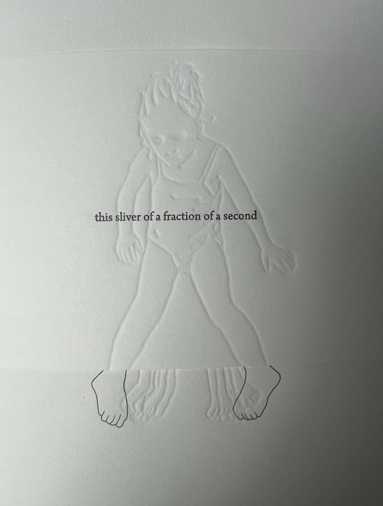 Papers for this project include Clearprint Design Vellum, Colorplan, and Canon Pro Premium Matte Photo Paper. Text was set in Arno and Myriad type and printed letterpress using polymer plates from Boxcar Press. The photograph was inkjet printed by Allison Grant in her studio. This project was made possible by financial support and community building from the Collaborative Arts Research Initiative at The University of Alabama.